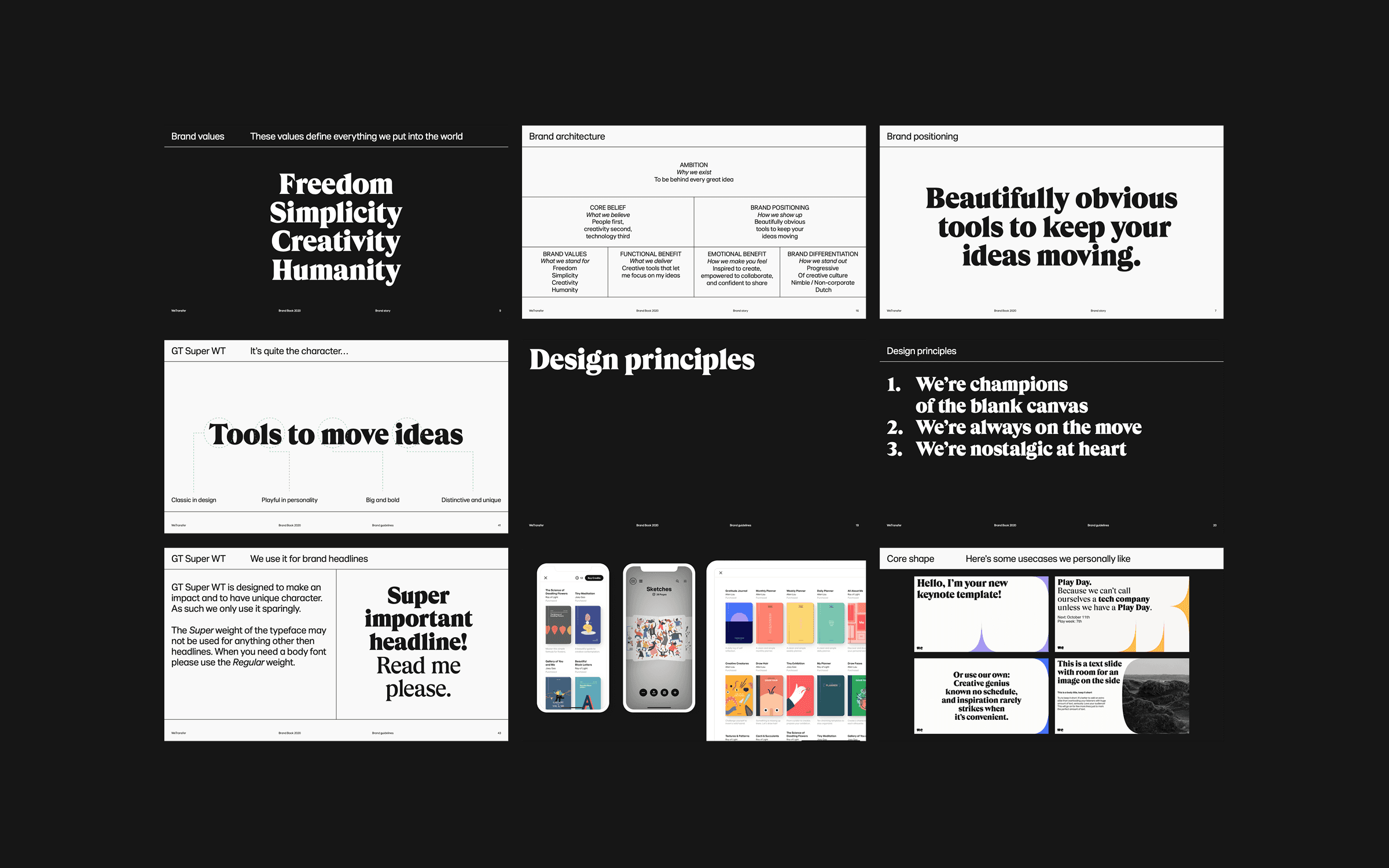 After acquiring Paper and Paste from FiftyThree in 2018, WeTransfer evolved into a set of creative tools. I led the direction for the brand language towards this change, defining core brand elements, product identities and guidelines while leading a team of 3 in-house designers and external design experts.